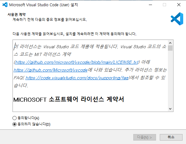 설치가 완료되고 실행하면 위와같은 화면이 나온다. 당연히 동의하고 다음을 쭉 누른다!