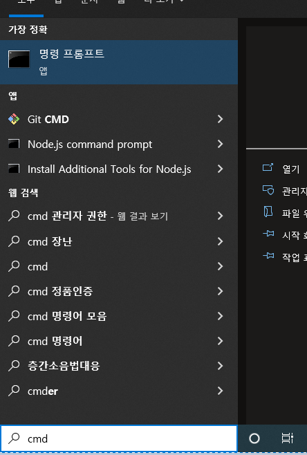 이제 실행창에서 cmd를 검색해서 실행하자!