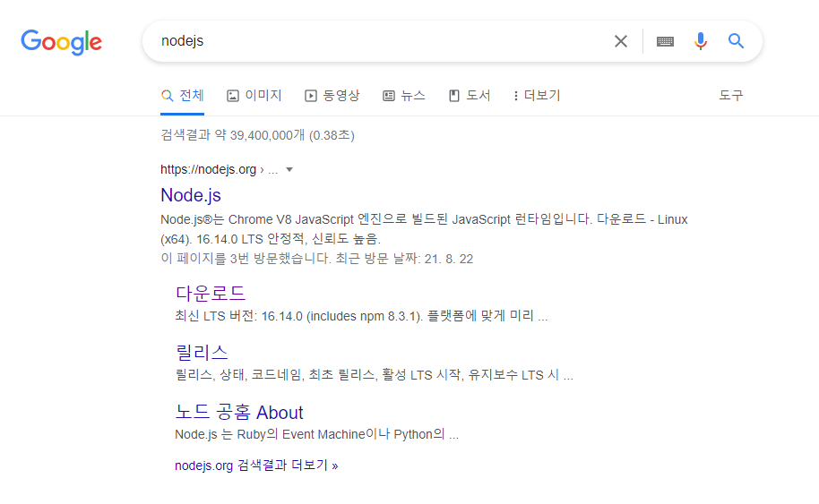 구글에 Nodejs를 검색하고 다운로드를 클릭한다!