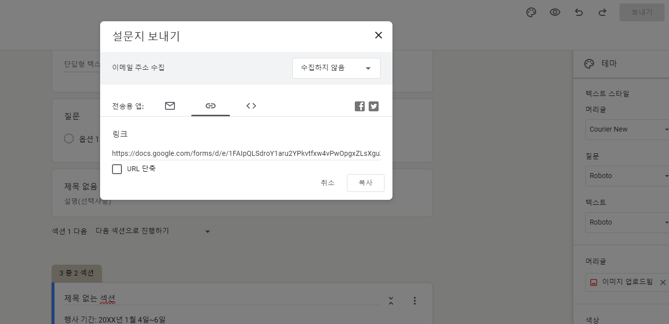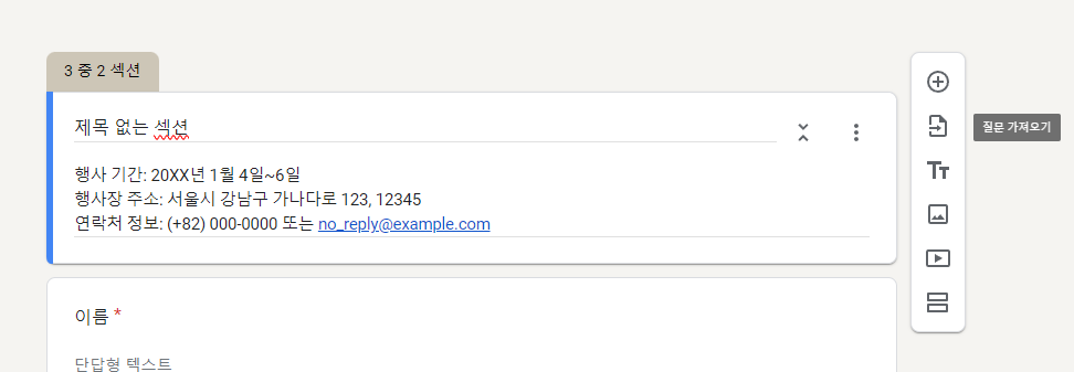 질문 가져오기를 하면 다른 폼에서 만든 질문 내용을 가져올 수 있는 기능도 지원한다?!