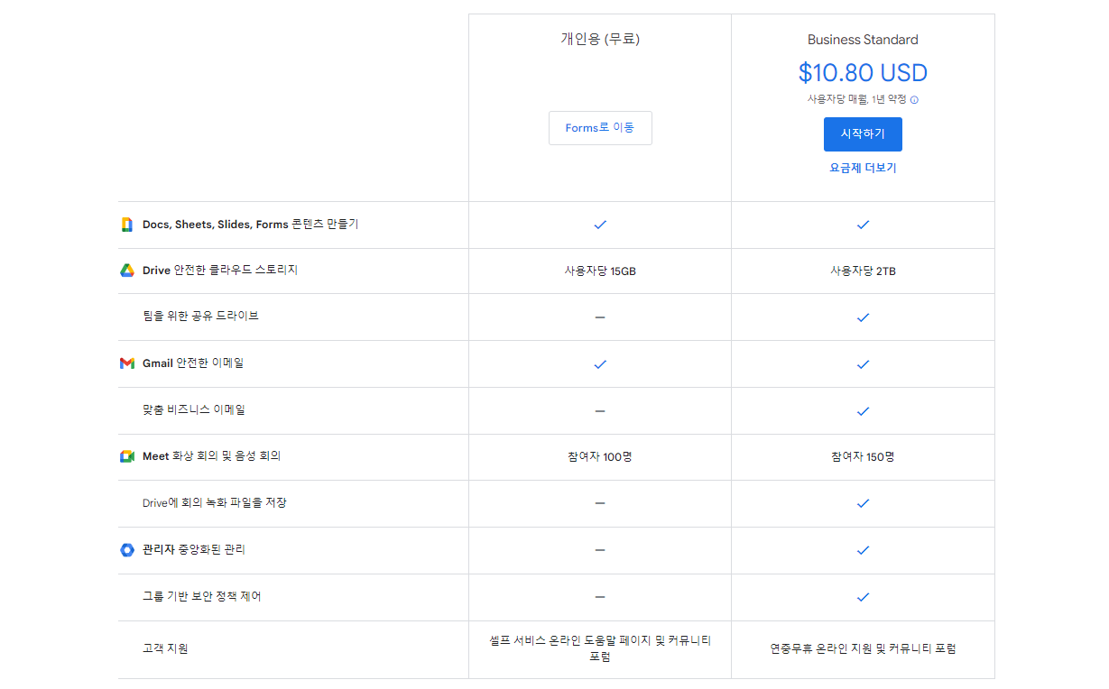 업무용 Forms 사용해보기가 있는데 다른점이 용량 등이 다른 것을 확인했다!