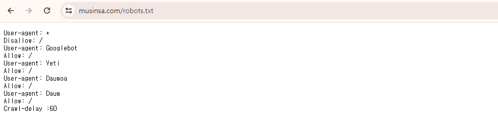 robots.txt는 관행적으로 모든 홈페이지에 존재해야하고 실제로 대부분의 사이트에 있는 것을 확인할 수 있다.