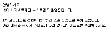 지원서의 수준에 따라 1차 온라인 코딩 테스트를 칠 수 있고 없고가 아닌 2차 온라인 코딩 테스트를