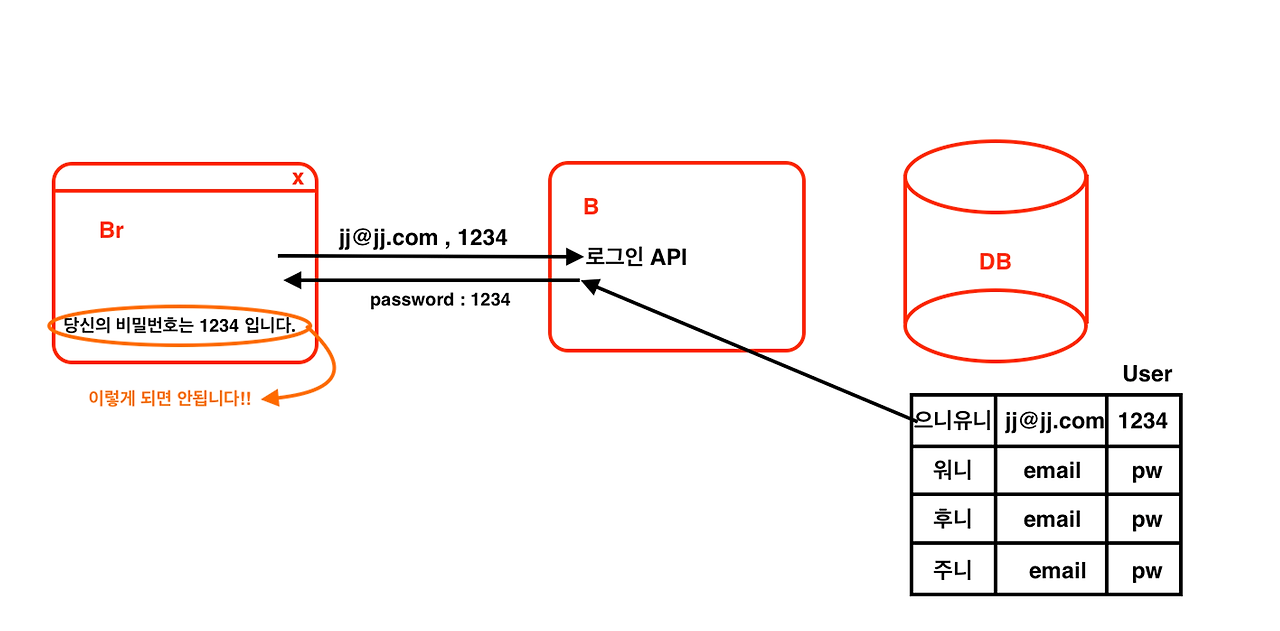 DB에 있는 비밀번호를 알 수 있게 된다면, 해커가 DB를 해킹했을 때 민감한 정보에 접근이 가능하게 된다.