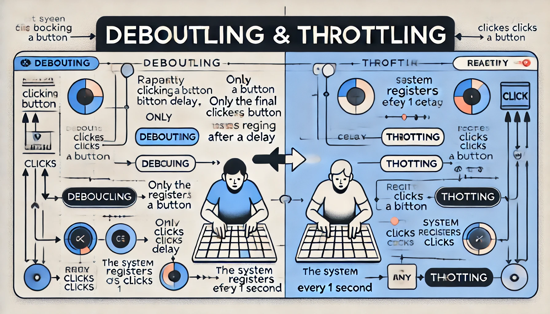 정리하면 특정 시간 이내, 추가 이벤트가 없는 경우, 첫 번째 ( 또는 마지막 ) 1회만 실행하는 방식이다.