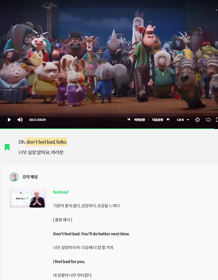오늘은 영어 첫걸음 [ 날씨 & 자연 ] 과 영화 [ 씽 ] 6강을 들었다.