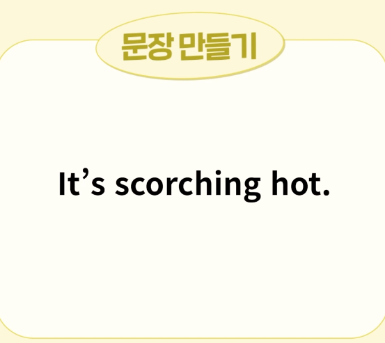 보통 덥다고 말할 때 It's so hot 이라고 말했는데 타버릴 정도 를 나타내는 단어가 scroching 이다...!