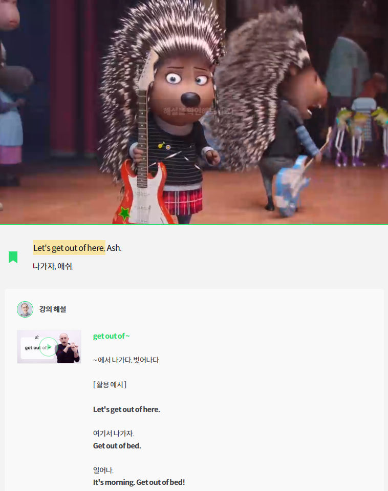 get out of : ~ 에서 나가다를 뜻하는 문장 이거는 뭐 자주 사용해서 크게 어렵지 않았다.