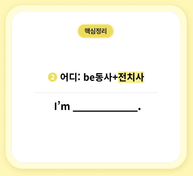 Be 동사 + 전치사 : 어디