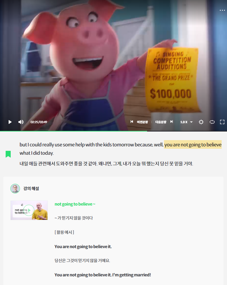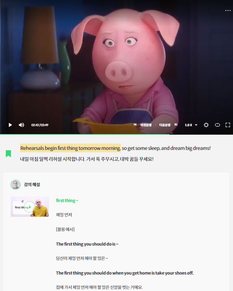오늘은 스피킹 문법 빌드업 [ Am ] 과 영화 [ 씽 ] 9강을 들었다.