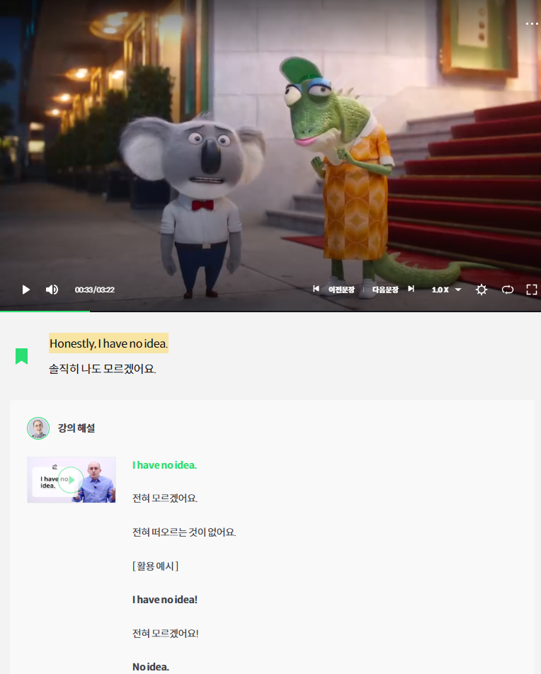 Honestly. I have no idea. : 솔직히 나도 모르겠어요.