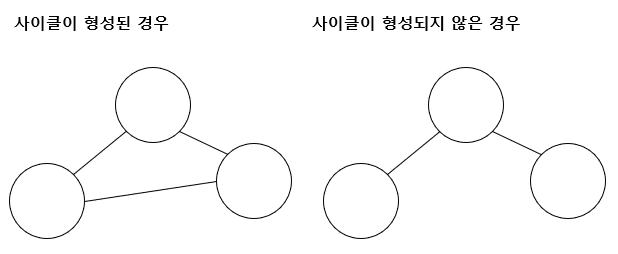 여기서 말하는 ' 사이클 ' 이란 것은 그래프가 서로 연결되어 사이클을 형성하는 경우입니다.