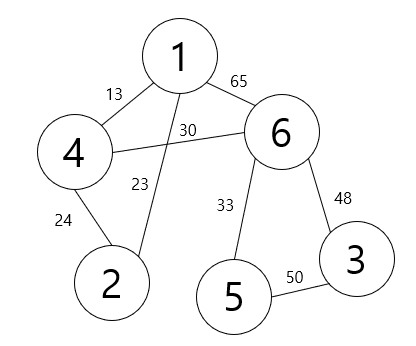 이를 토대로 알고리즘에 맞게 그래프를 연결하면 가장 적은 비용으로 모든 노드를 연결한 그래프인