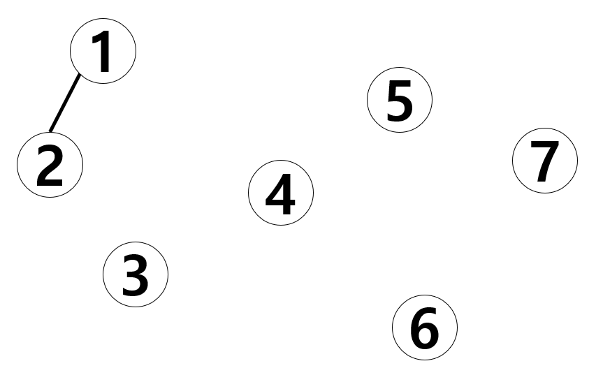 위와 같이 여러 개의 노드가 자유분방하게 존재하고 있다고 했을 때, 이들은 모두 연결되지 않고 각자 자신만을