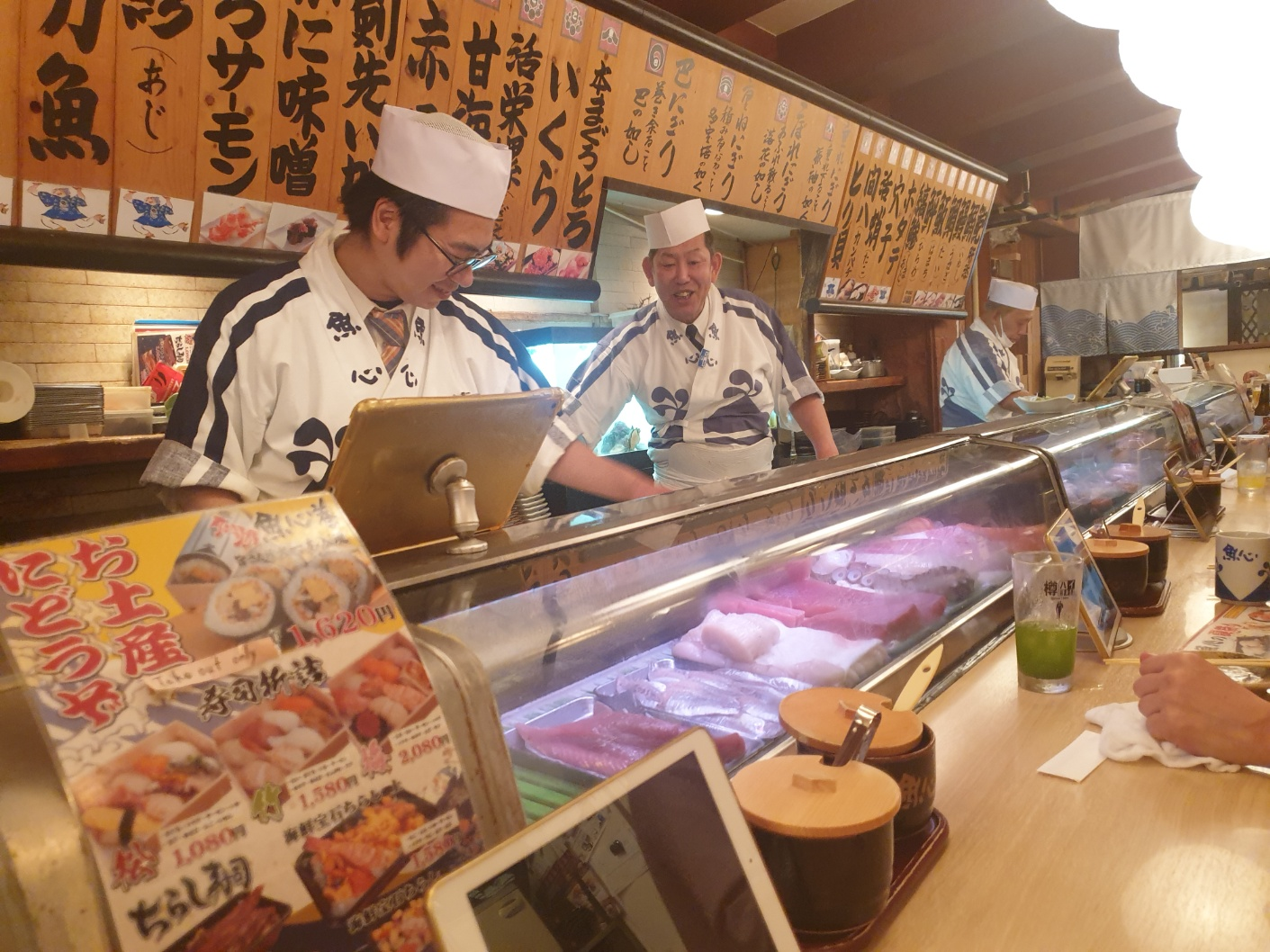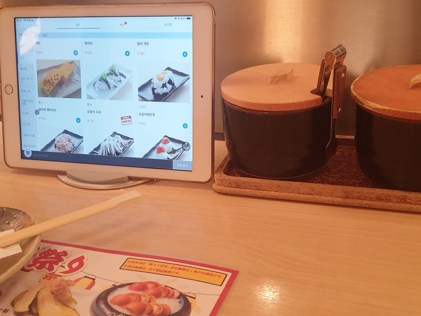 자리에 앉으면 테블릿으로 원하는 초밥을 주문할 수 있다.