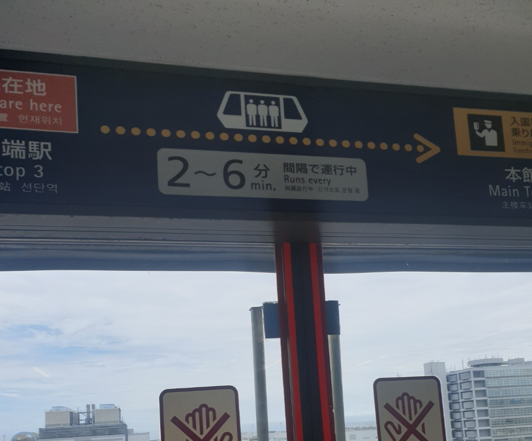 가능한 앞에서 타면 내렸을 때 에스컬레이터와 가까워서 조금 더 빨리 입국 심사장으로 갈 수 있다.