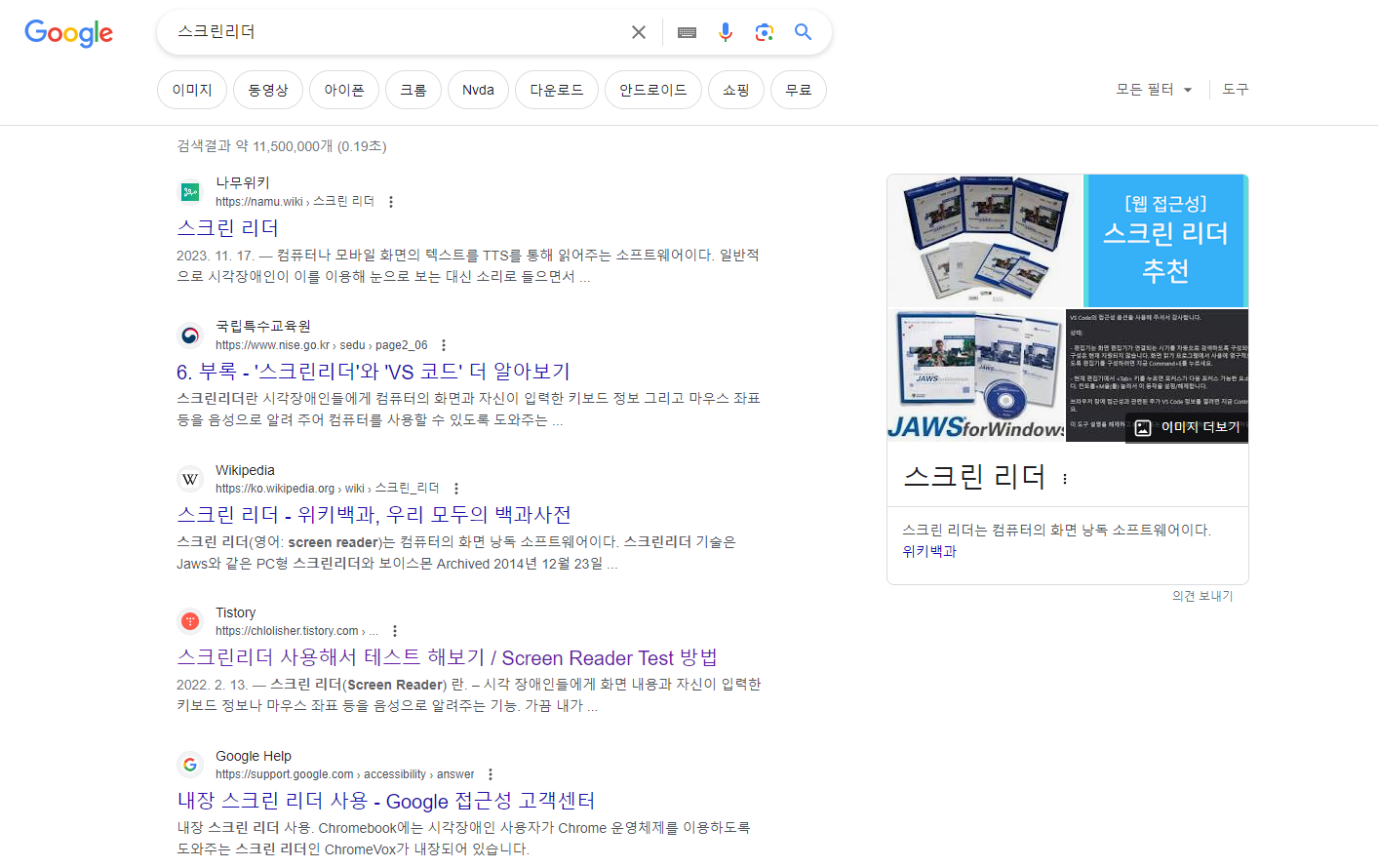 스크린 리더를 선택하기 위해서 검색을 했는데, 내장 스크린리더에 대한 내용이 더 많았고