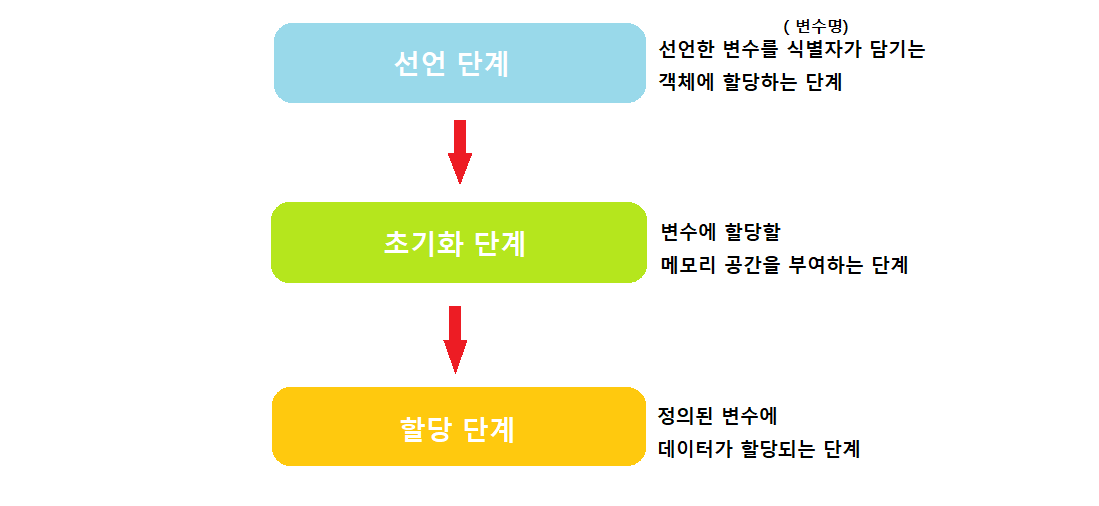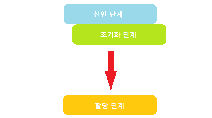 우리가 선언하는 변수는 선언 단계, 초기화 단계, 할당 단계를 거치게 된다.