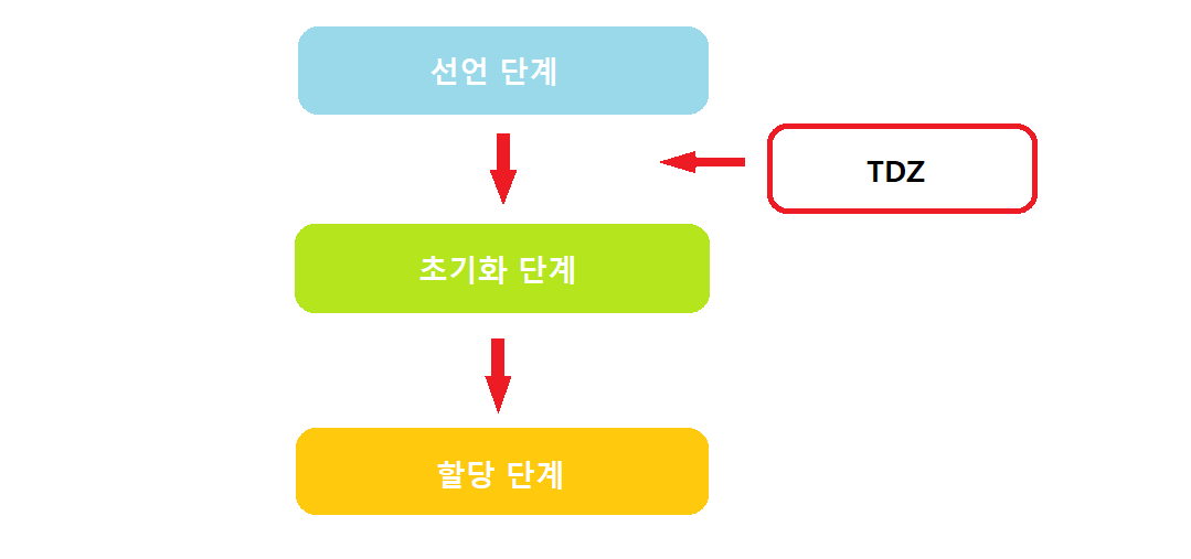 정리하면 선언 단계와 초기화 단계가 분리되어 실행되면 사이에 TDZ가 존재하게 된다.