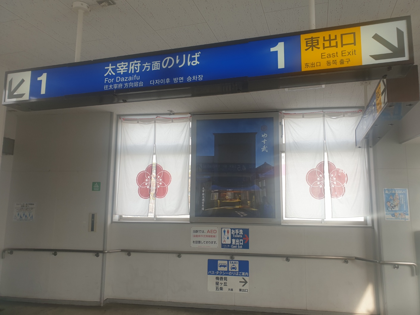 안내를 따라 올라가서 이동하면 다자이후 방면 승강장 안내 표지판이 나온다.