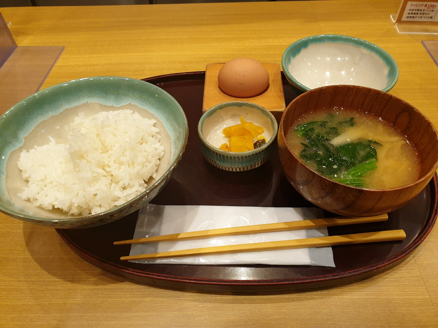 한국에서 계란 밥이라고 하면 계란 볶음밥을 생각할텐데, 진짜 계란과 밥을 준다.