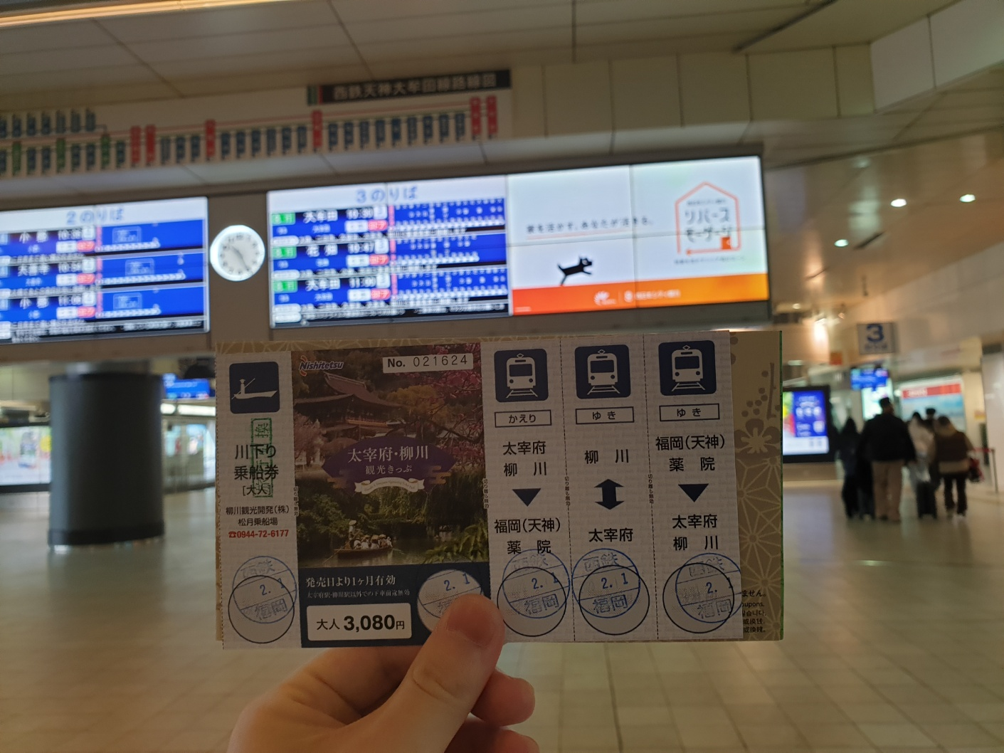 그것을 다시 티켓 구매처로 가져가니 다자이후 야나가와 티켓을 얻을 수 있었다.