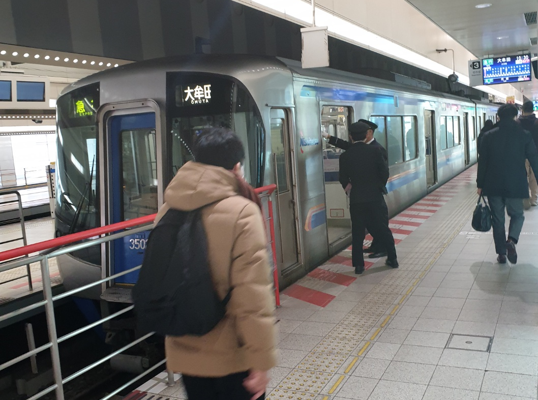 텐진 방향으로 열차가 오길 기다리다가 열차를 타고 후쓰카이치역으로 이동했다.