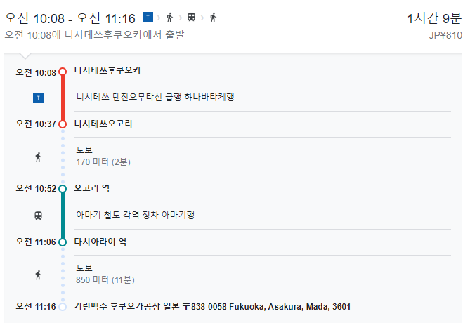 하카타 역에서 가는 방법을 모르기 때문에 구글에 검색을 해봤다.