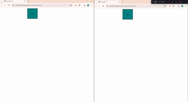 이제 앞서 말했던 x축으로 쭉 이동하다가 y축으로 이동하는 애니메이션을 만들어보자 :
