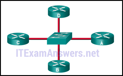 전시를 참조하십시오. 이 OSPF 다중 액세스 네트워크에서 도출할 수 있는 결론은?