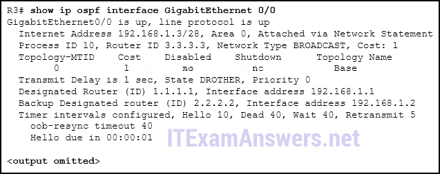 ◾The router ID values were not the criteria used to select the DR and the BDR.