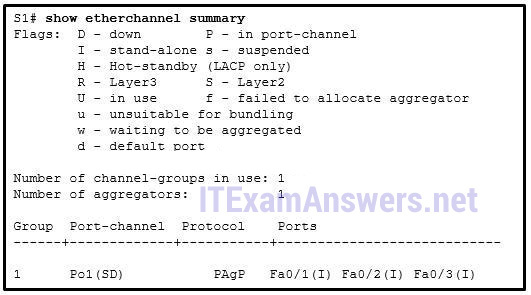 ◾The EtherChannel is partially functional as indicated by the P flags for the FastEthernet ports.