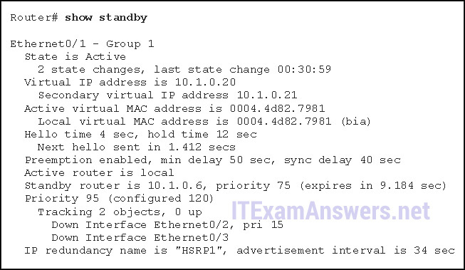 ◾the virtual IP address and the virtual MAC address for the HSRP group 1
