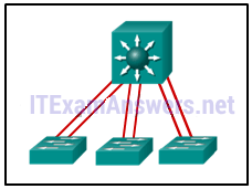 전시를 참조하십시오. 각 계층 2 스위치와 계층 3 스위치 간에 더 많은 대역폭을 제공하기 위해 각 액세스 계층 스위치 링크를 집계할 수 있는 스위칭 기술은?