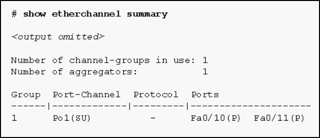 ◾The EtherChannel is in use and functional as indicated by the SU and P flags in the command output.