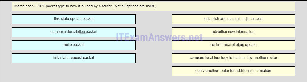 ◾They exchange DBD packets in order to advertise parameters such as hello and dead intervals.
