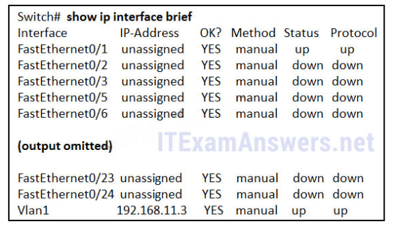 전시회를 참조하라. show ip interface brief 명령의 보기 가능한 출력에서 결정할 수 있는 세 가지 사실은? (3개 선택)
