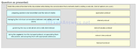 Match the protocol function to the description while taking into consideration that a network client is visiting a web site. (Not all options are used.)