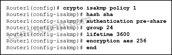 ◦R1(config)# crypto isakmp key cisco123 address 209.165.200.226