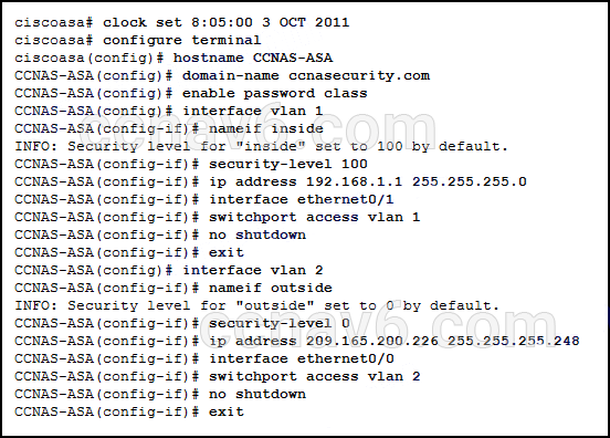 ◦CCNAS-ASA(config)# dhcpd address 192.168.1.25-192.168.1.56 inside*