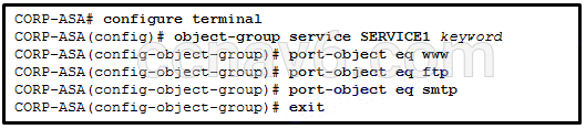 전시를 참조하십시오. 표시된 구성 명령을 ASA 5505에 입력한 후 show running-config object 명령의 출력에 표시되는 내용은?