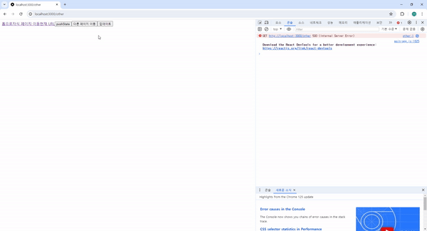 앞선 pushState가 현재 화면을 유지한 상태로 state를 업데이트 시켜줬다면 replaceState는 그쪽으로