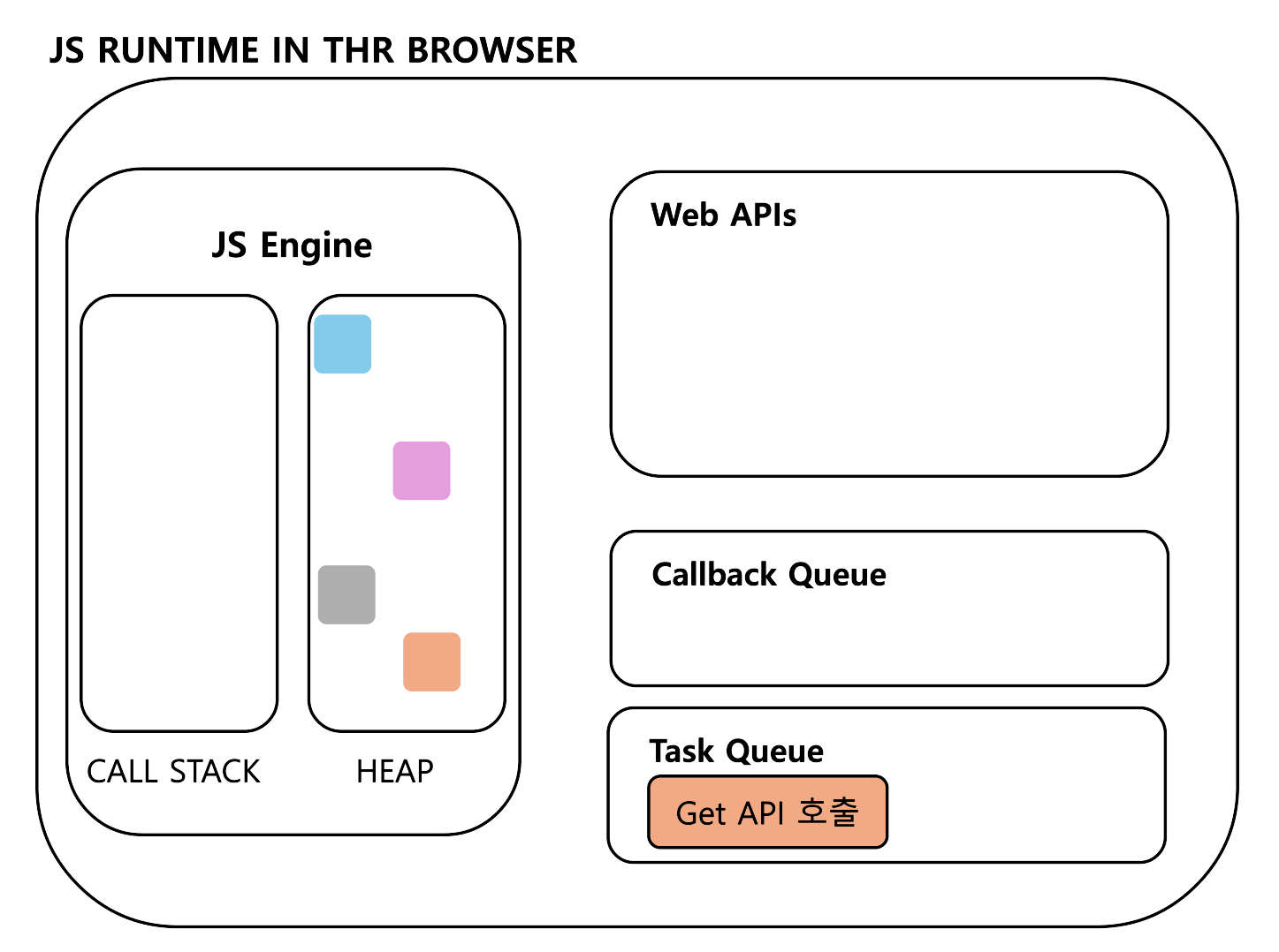 Call Stack이 비어있기 때문에 Get API를 호출하는 함수가 Call Stack으로 들어가고 실행이 된다.