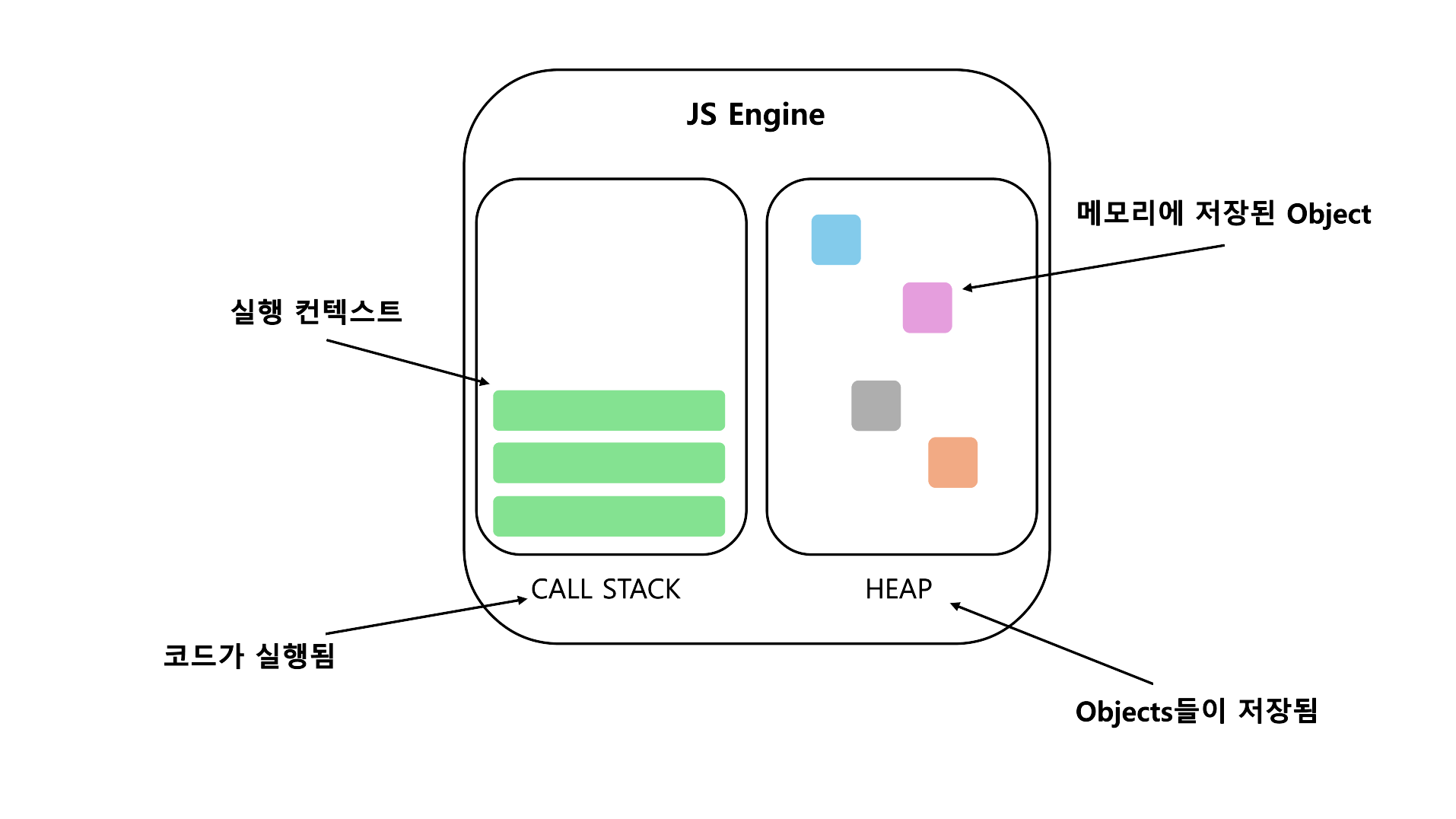 모든 자바스크립트 엔진은 Call Stack과 Heap을 포함하고 있다.