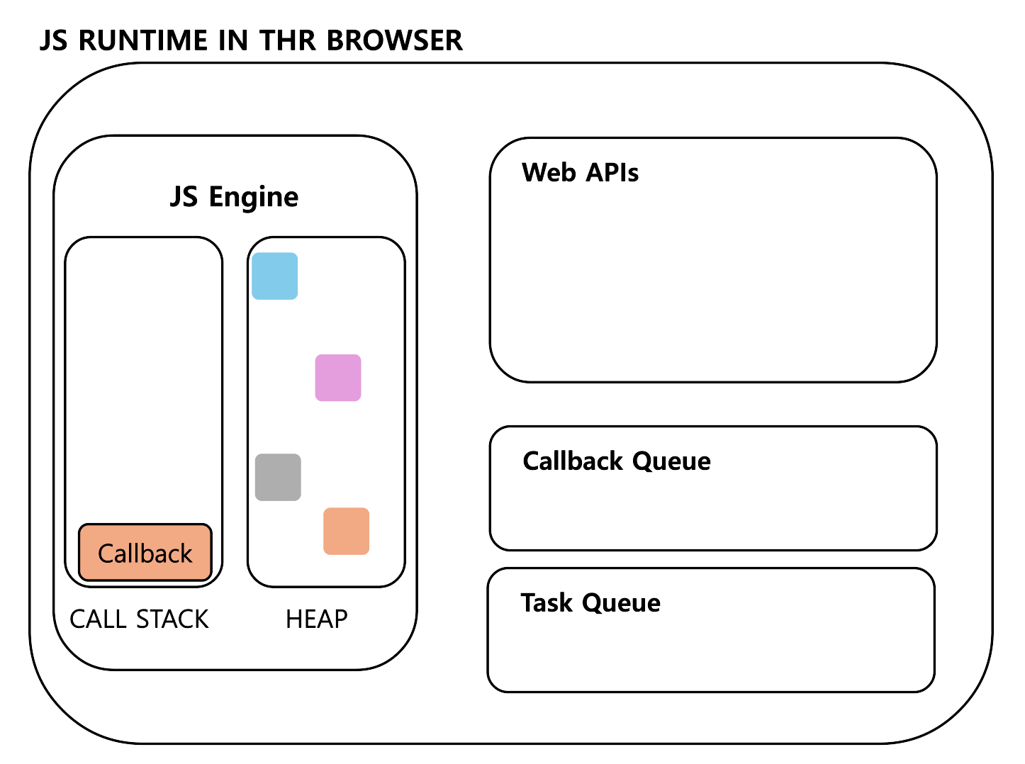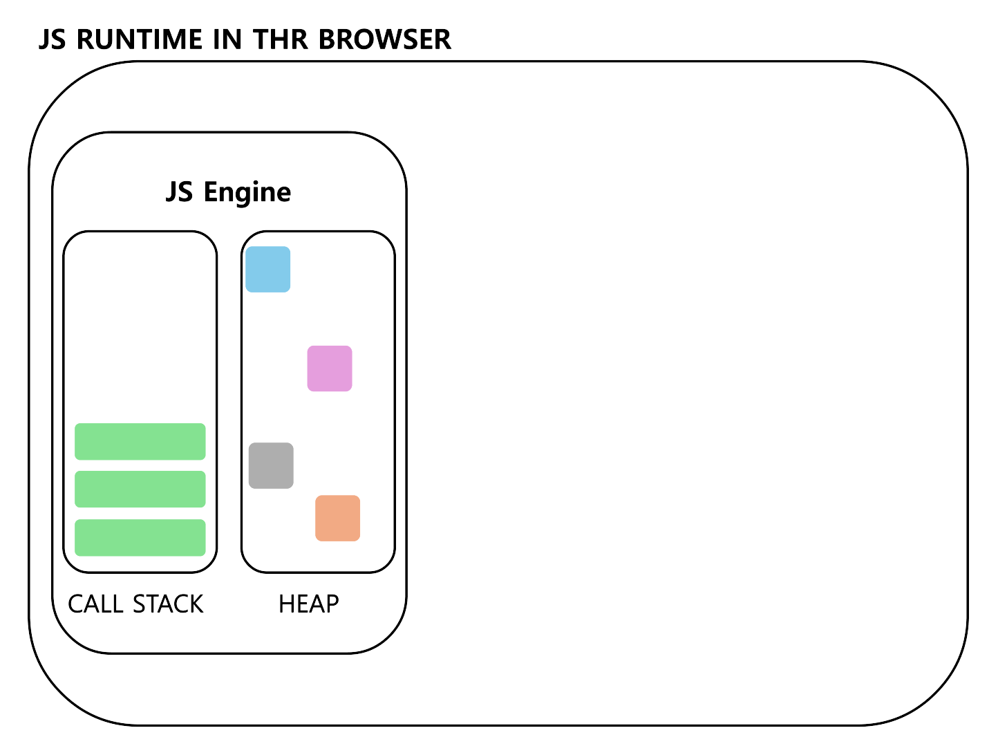 정리하면 자바스크립트 런타임은 자바스크립트를 실행하는 데 필요한 모든 것을 포함하는 큰 상자라고 생각하면 된다.