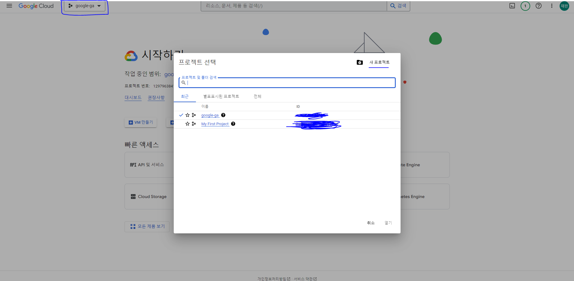 프로젝트를 만들면 사용할 API 기능을 허용해줘야 한다.