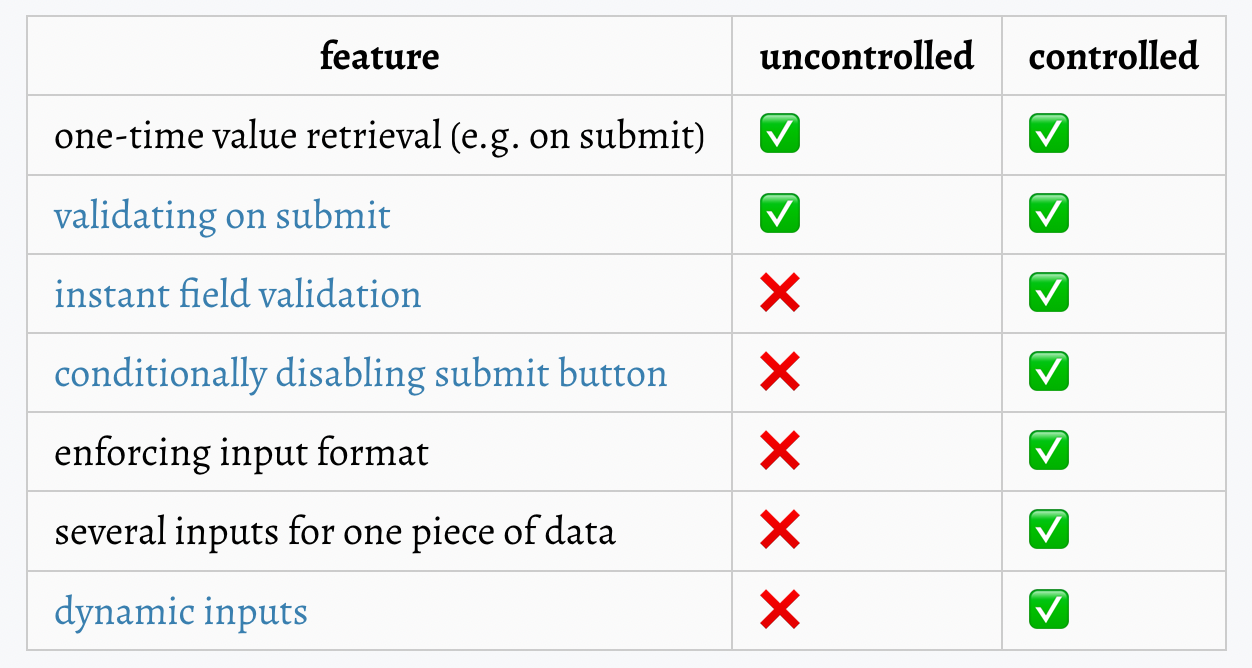 제어 컴포넌트나 비제어 컴포넌트를 사용하는 것이 중요하다.
