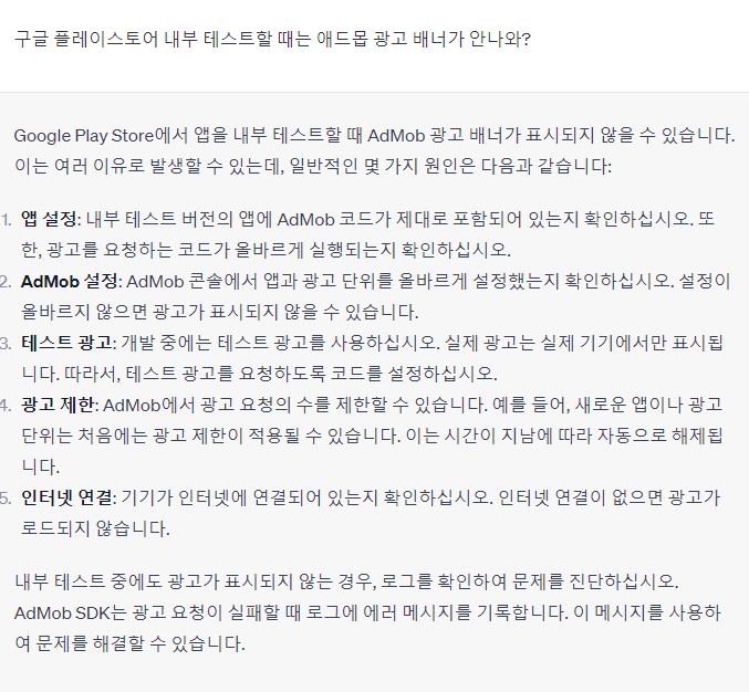 구글 플레이스토어 내부 테스트할 때는 애드몹 광고 배너가 안나와?