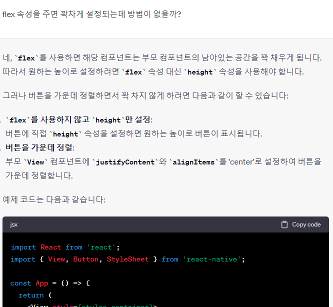 React Native에서 View 아래 버튼의 높이가 꽉차는데 내가 원하는 높이로 설정하려면 어떤 방법을 사용해야해?