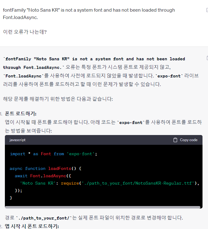 폰트를 가지고 올 때 오류가 나서 확인해보니 expo에서는 폰트를 가지고 오는 방법이 따로 있었다....